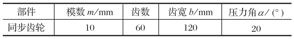 采用理論分析與有限元分析相結合的方法,對同步齒輪嚙合傳動進行研究。同步齒輪結構參數如表1所列。