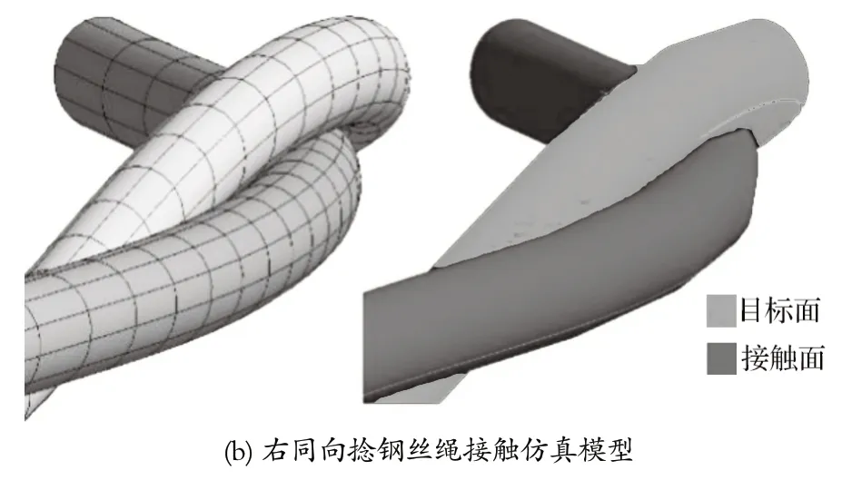 從表2 可以看出,鋼絲繩主要分為 3 層,中 心股、內股和外股;3 股的直徑不同,并且股捻距也存在一定的差異。在進行仿真求解時,需要對各個層進行定義。