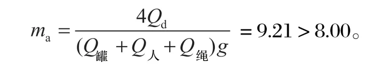 靜張力 Fjm 小于設計值,強度校驗合格。