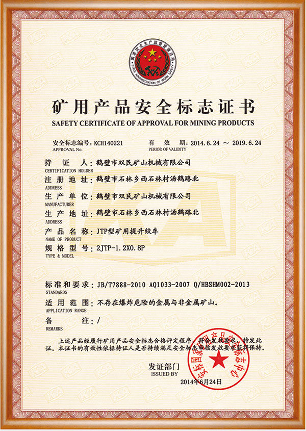 礦用產品安全標志證書